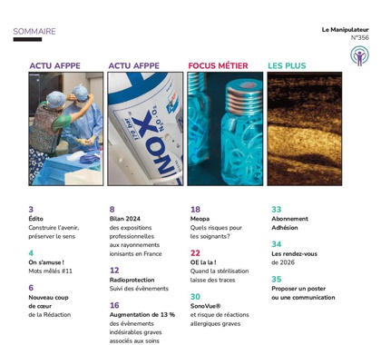 Le manipulateur d'imagerie médicale et de radiothérapie, premier média de communication de l'AFPPE, est une revue offerte gratuitement à tous nos adhérents.