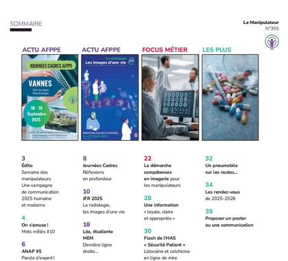 Le manipulateur d'imagerie médicale et de radiothérapie, premier média de communication de l'AFPPE, est une revue offerte gratuitement à tous nos adhérents.